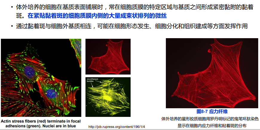 细胞内大部分微丝都集中在紧贴细胞质膜的细胞质区域,并由微丝交联蛋白交联成凝胶态的三维网络结构。