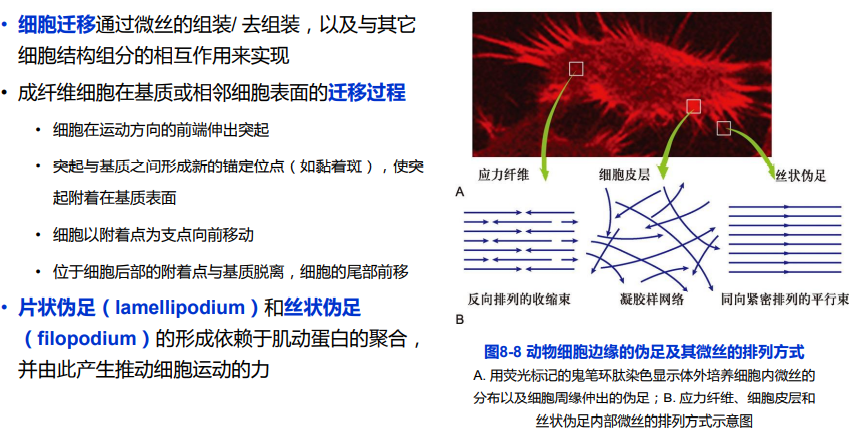 细胞中大多数微丝结构处于动态的组装和去组装过程,并通过这种方式实现功能。