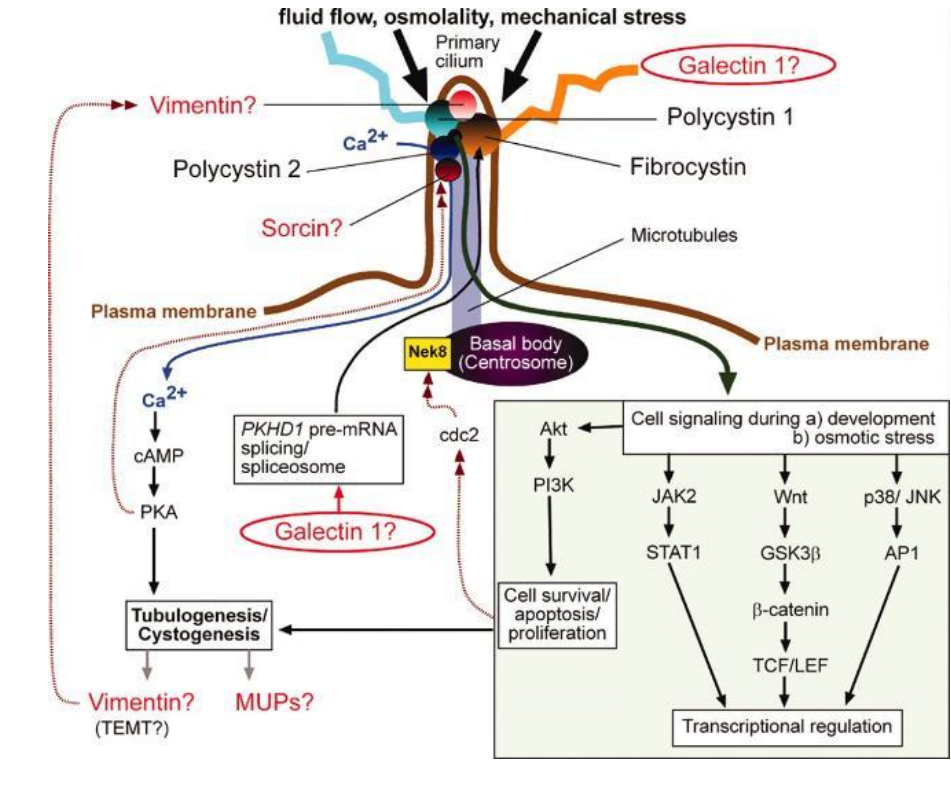 - 纤毛的外部是由细胞质膜的特化而形成的纤毛膜,内部是由微管及其附属蛋白组装而成的轴丝;
