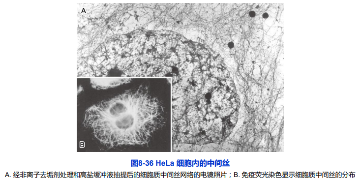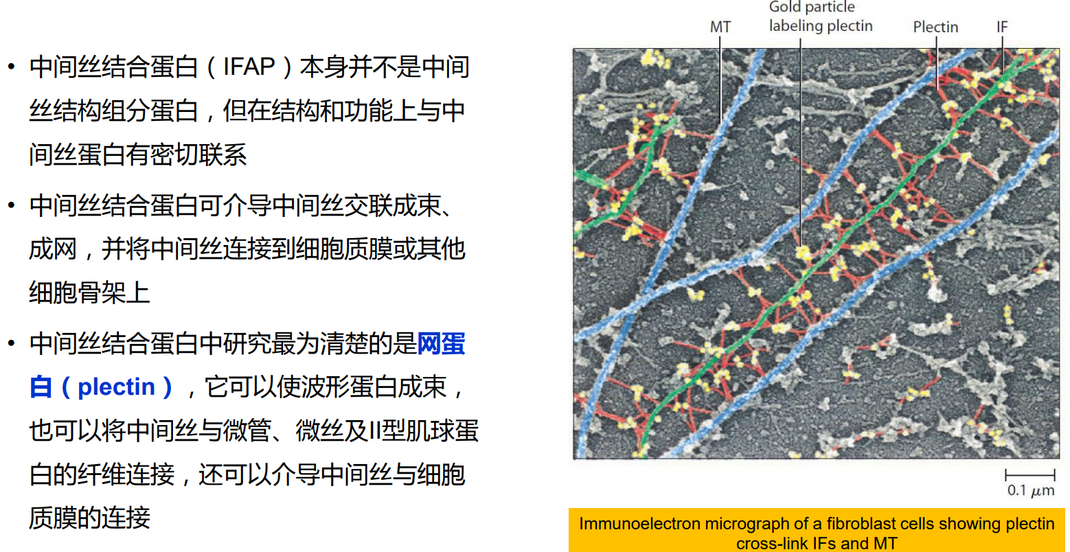 最初是在平滑肌细胞内发现;直径10 nm ;粗细介于肌细胞的粗肌丝和细肌丝之间;存在于绝 大多数动物细胞