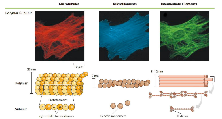 Eukaryotes Have Three Basic Types of Cytoskeletal Elements(微管、微丝、中间纤维)