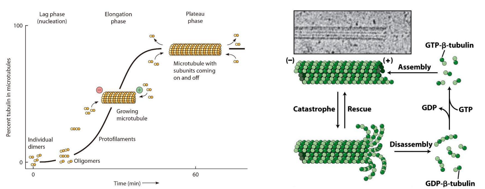 - 微管在体外组装的过程分为成核(nucleation)和延伸(elongation)两个阶段。