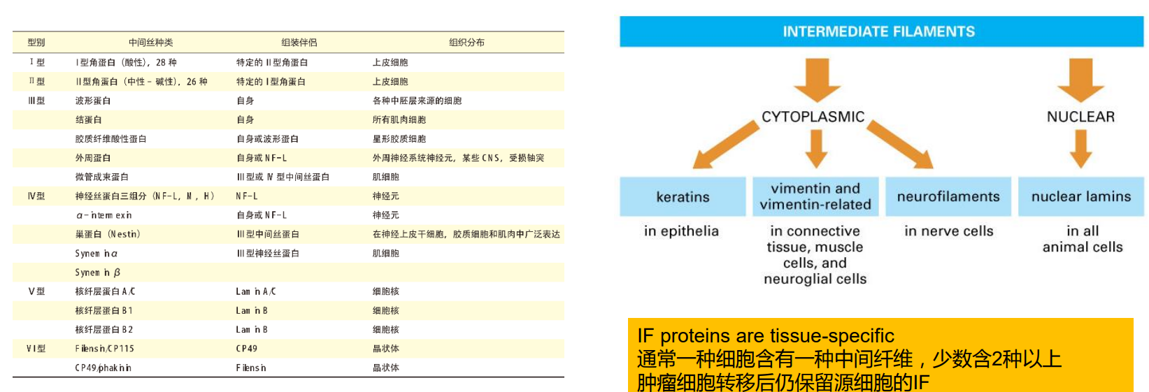 - 不同组织来源的细胞表达不同类型的中间丝蛋白