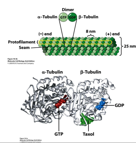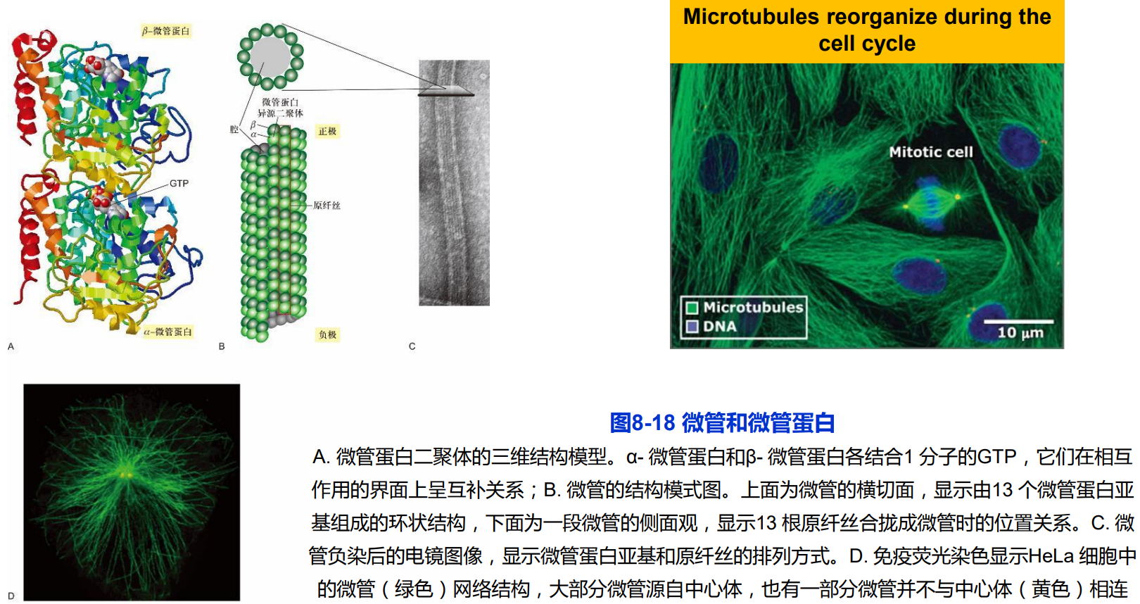 基本结构:α,β-微管蛋白二聚体;(细胞内游离态微管蛋白的主要存在形式)