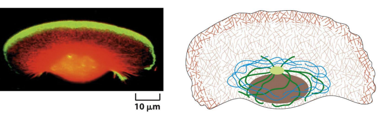 - MTOC(microtubule organizing centers):在细胞内起始微管的成核作用,并使之延伸的结构。
