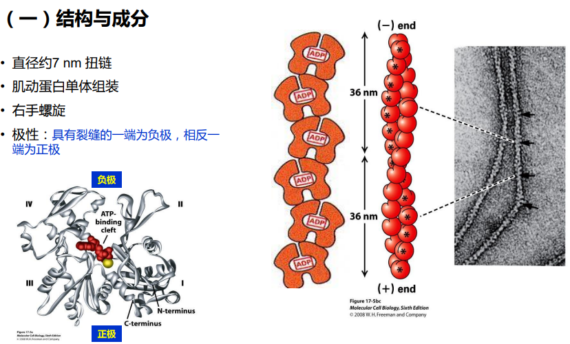 微丝又称作肌动蛋白丝(actin filament)或纤维状肌动蛋白(fibrous actin ,F-actin)