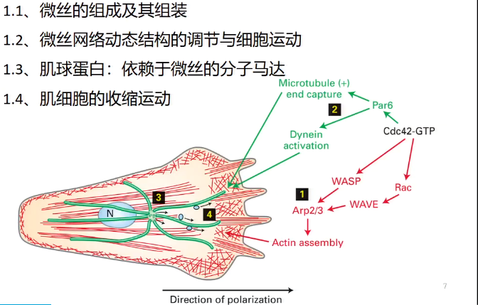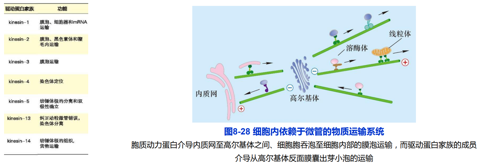 - 物质沿着微管定向转移为细胞内各种细胞器和生物大分子的不对称分布提供了可能;