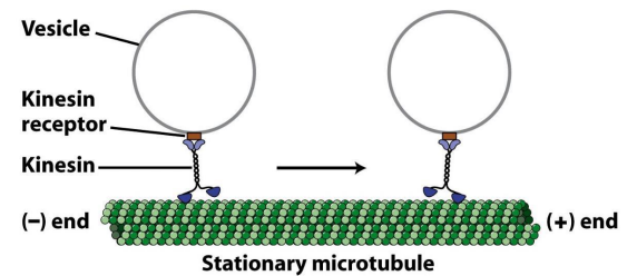 - C-驱动蛋白:马达结构域位于多肽链C-端,从微管的正极向负极移动;
