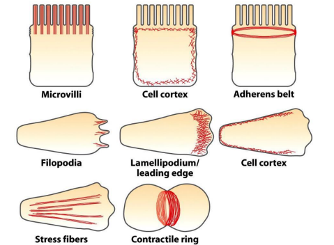 - 成束蛋白(bunding protein):将相邻的微丝交联成平行排列状态;