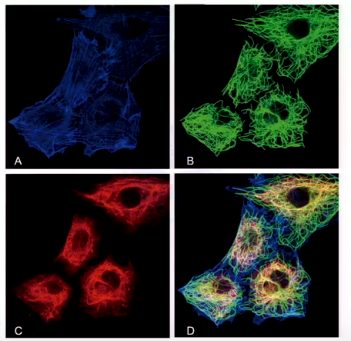 细胞骨架(cytoskeleton)一般指真核细胞细胞质内由蛋白质组成的复杂纤维状网架结构体系,包括:微丝、微管、中间纤维。