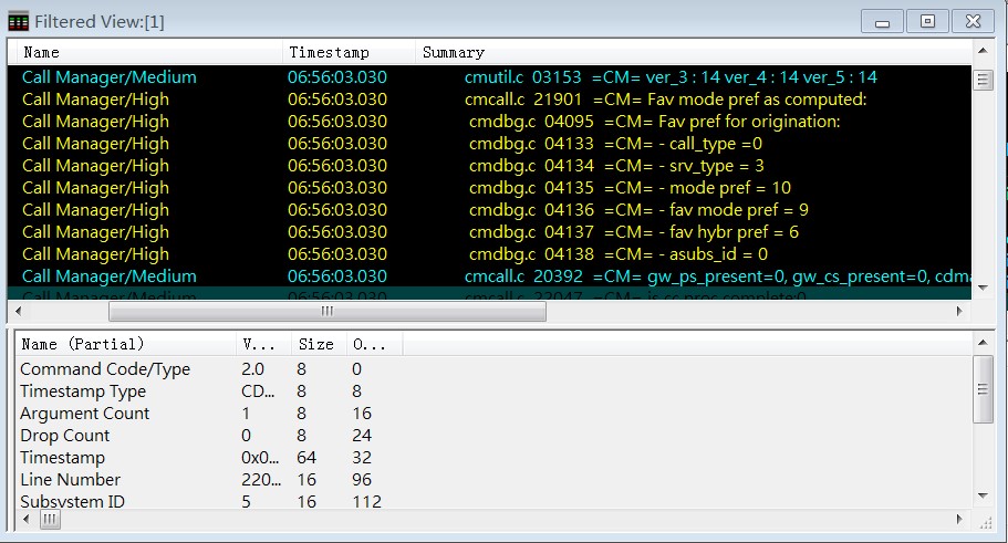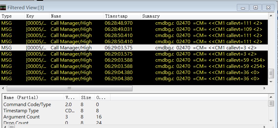 这里我们可以查看到CM层中的EVENT和状态。对应MSG里面的参数,我们可以通过下载modem代码,并通过一些软件查看工具,如Source Insight去代码里查找对应的代码,如callevt =3, 是 “end” 的事件。