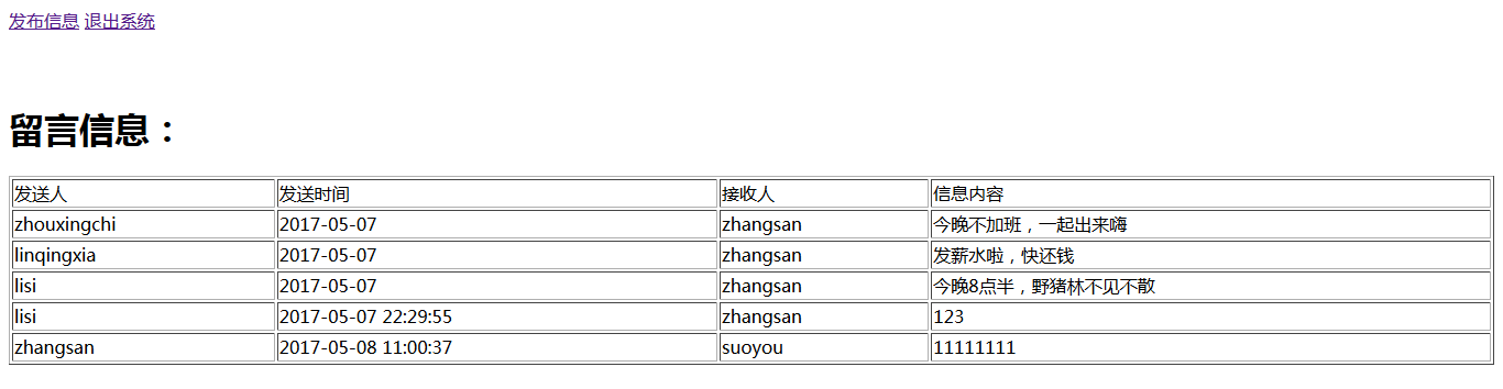 <h1>留言信息:</h1>