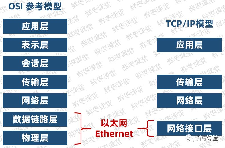 在OSI七层模型里面,以太网是数据链路层和物理层的技术。在TCP/IP模型中,是网络接口层。
