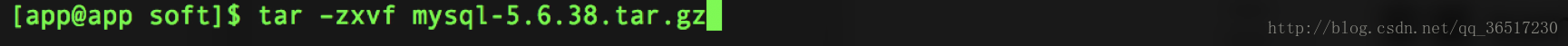 4. 回到mysql压缩文件的路径中cd /home/app/soft 解压tar –zxvf mysql-5.6.38.tar.gz