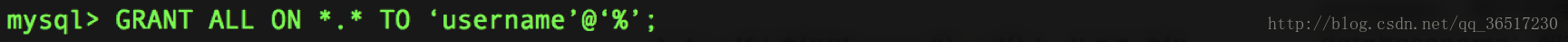 21.给当前创建的用户授权GRANT privileges ONdatabasename.tablename TO 'username'@'host' (privileges:用户的操作权限,如SELECT,INSERT,UPDATE等,如果要授予所的权限则使用ALL。databasename:数据库名。tablename:表名,如果要授予该用户对所有数据库和表的相应操作权限则可用*表示,如*.*。建议使用:GRANT ALL ON *.* TO ‘username’@‘%’;)