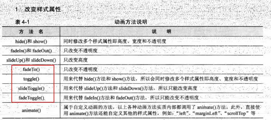 这些动画就是animate()方法的一种内置了特定样式的简写形式,这些特定的样式值可以为"show"、"hide"、"toggle",也可以自定义数值