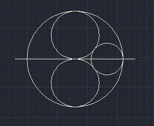 8、在“绘图-圆”子菜单下选择“相切、相切、半径(T)”命令,捕捉左侧二个圆的切点,在“指定圆的半径:”提示下,输入半径值为26.67,并按回车键结束,从而绘制左侧的小圆对象。