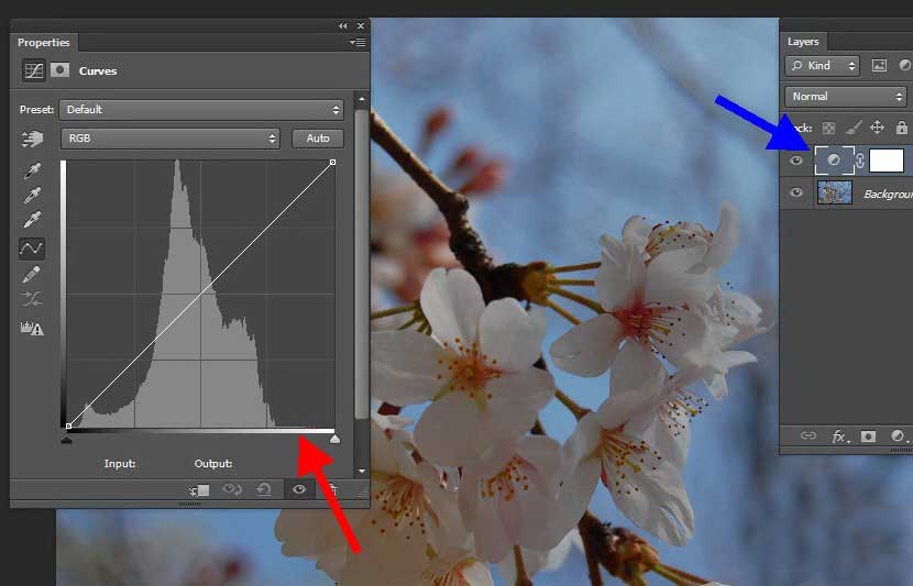 下图就是调整了的曲线,整体更明亮,暗的地方 (如树枝) 变得更暗,于是对比更强烈。值得留意是,你可以点击箭头指着的「眼睛」,就可以随时开启 / 关闭这图层所施加的效果,让你实时比较。完成后另存成 JPG 档即可。