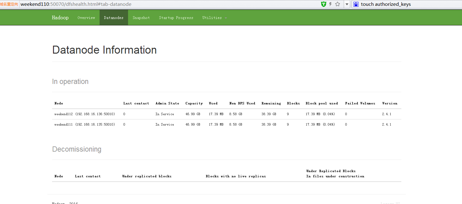 以上就是苗条宝马最近收集整理的关于hadoop集群不管怎么启动在hadoop管理界面都看到只有一个datanode的全部内容,更多相关hadoop集群不管怎么启动在hadoop管理界面都看到只有一个datanode内容请搜索靠谱客的其他文章。