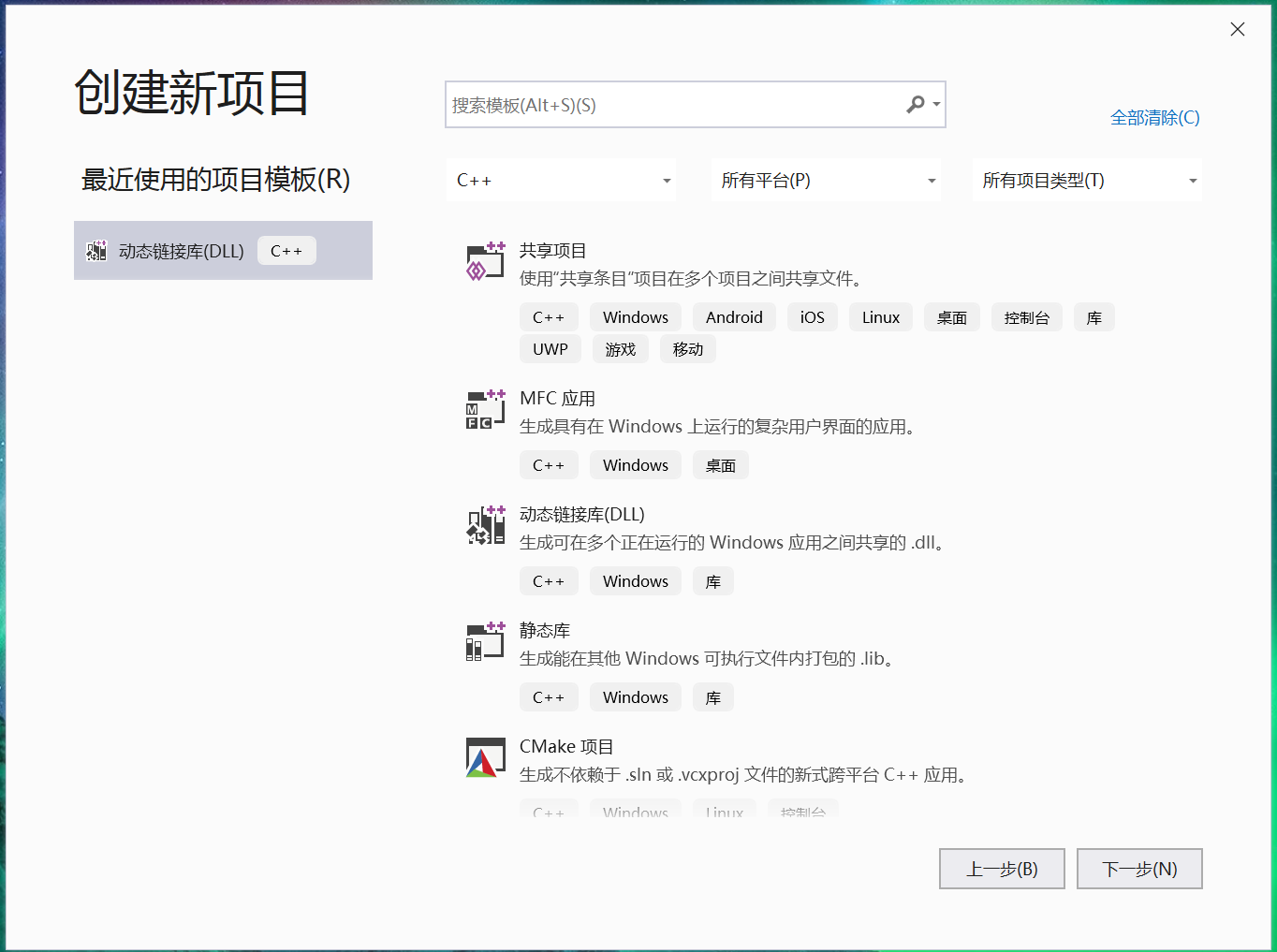 打开visual studio 2019,创建新项目->动态链接库(DLL),如图: