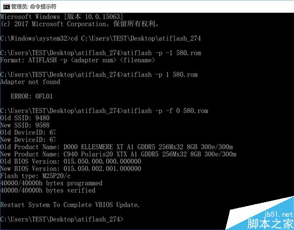 我们强制为RX 480刷写入RX 580中提取的BIOS,详细过程不表,直接看结果。刷写完成后重启电脑,显卡能正确开机运行,无黑屏死机问题。