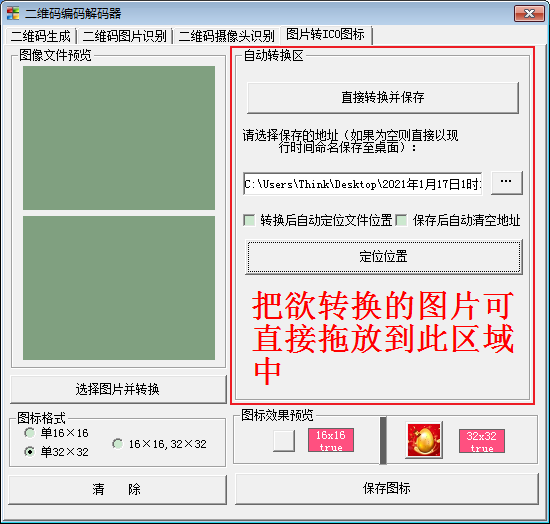 直接将图片往自动转换区一拖动,然后桌面上就生成了相应的图标。