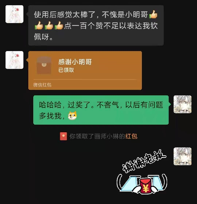 后面我就把程序发给朋友了,朋友使用之后觉得挺满意的,还给我发了个红包: