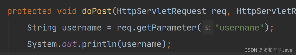 @Override protected void doPost(HttpServletRequest req, HttpServletResponse resp) throws ServletException, IOException { //请求体 System.out.println("==================请求体=================="); BufferedReader reader = req.getReader(); String s = reader.readLine(); System.out.println(s); } -