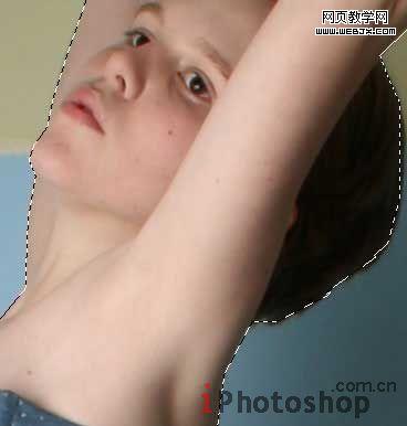 7、新建层,透明度设置为53%,并使用多边形套索工具将MM束胸部分的衣服勾出来。