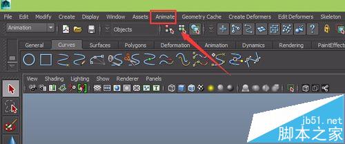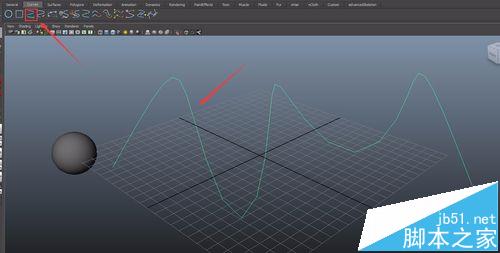 7、在视图区,先选择球体,按下键盘的SHIFT键在加选曲线,在上面的菜单区找到Animate菜单,如图所示: