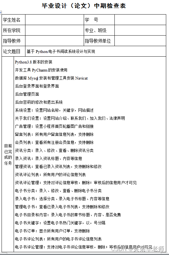 本部分讲解 python电子书阅读系统毕设 中期检查报告