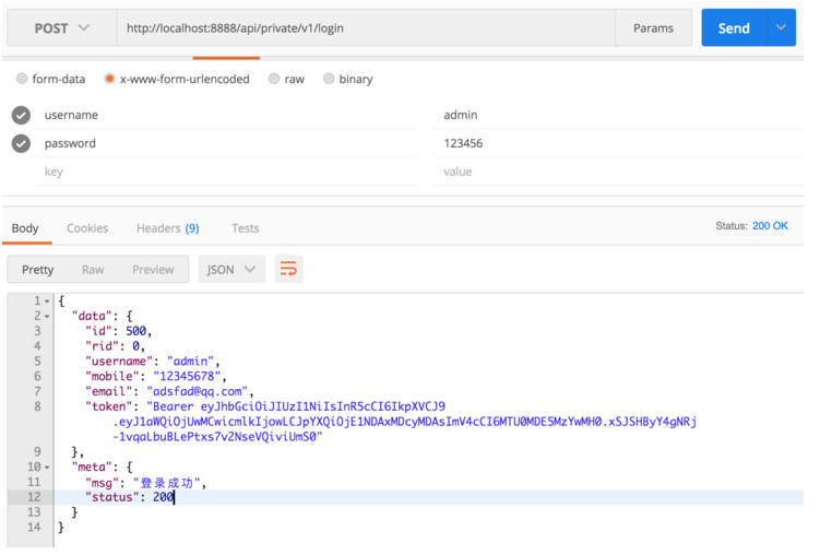 后台已经写好接口文档,根据文档中的表述,我们测试登录接口: