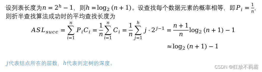 再结合二叉树的性质,计算出平均查找长度(假设判定树是一个满二叉树)。