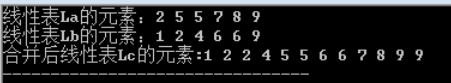 printf("合并后线性表Lc的元素:");
