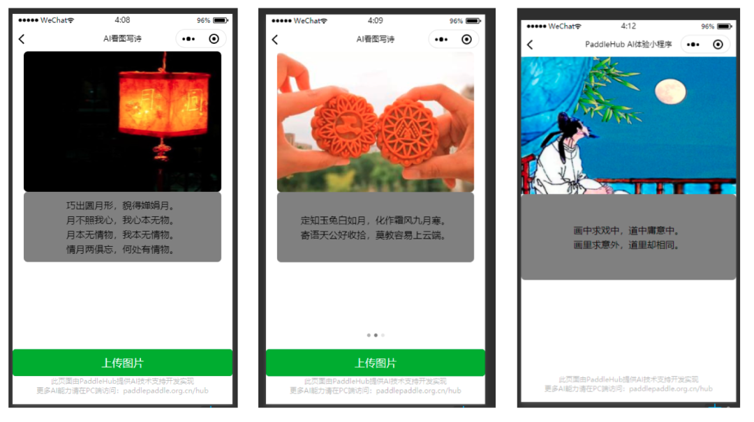 以上就是清新小馒头最近收集整理的关于当飞桨PaddleHub遇到微信小程序,AI也能指物作诗的全部内容,更多相关当飞桨PaddleHub遇到微信小程序内容请搜索靠谱客的其他文章。