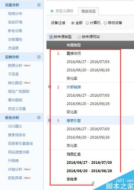 登录百度统计后台-->找到流量来源报告-->进行同比分析;