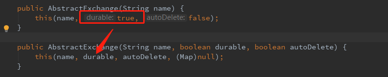 // public AbstractExchange(String name, boolean durable, boolean autoDelete) {