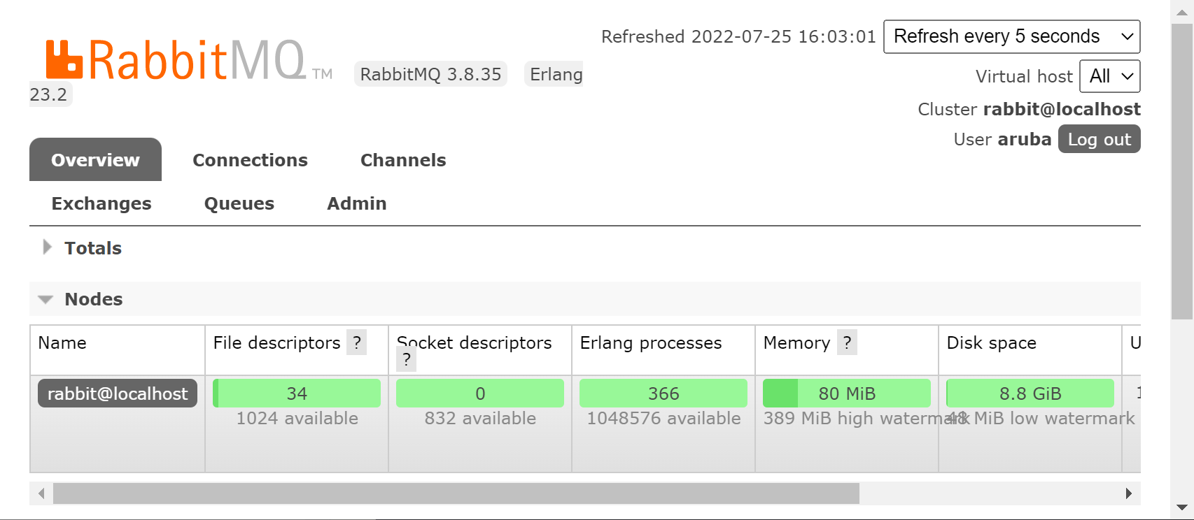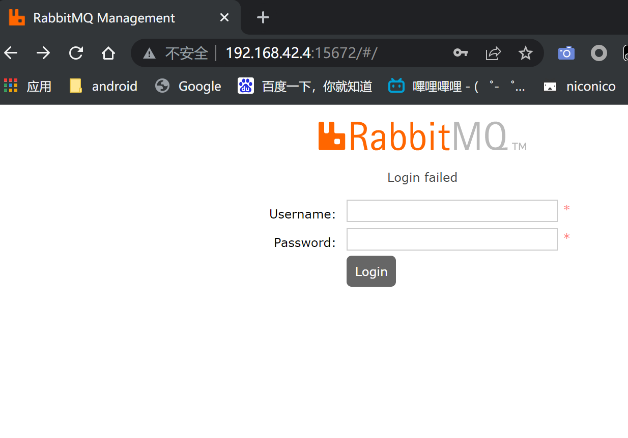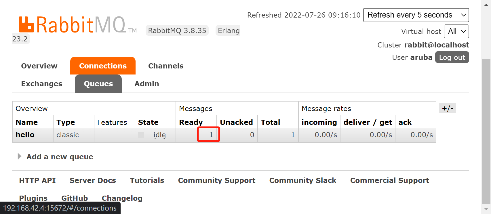 管理界面可以在本地使用guest账号(密码与账号相同)登录,但外部访问是不允许的,需要为RabbitMQ添加账号