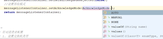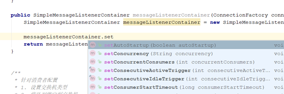 在rabbitMQConfig类中添加SimpleMessageListenerContainer的bean.在simpleMessageListenerContainer可以设置很多东西。如下图: