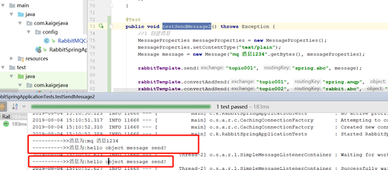 在测试类中,运行发送消息的代码: