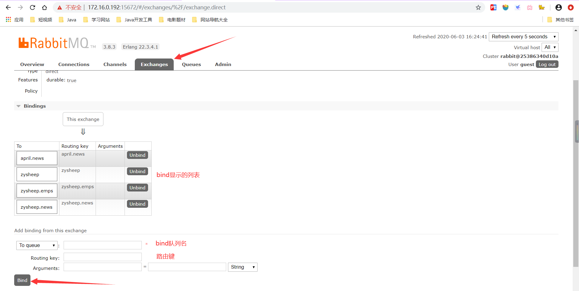 * 绑定队列和交换机