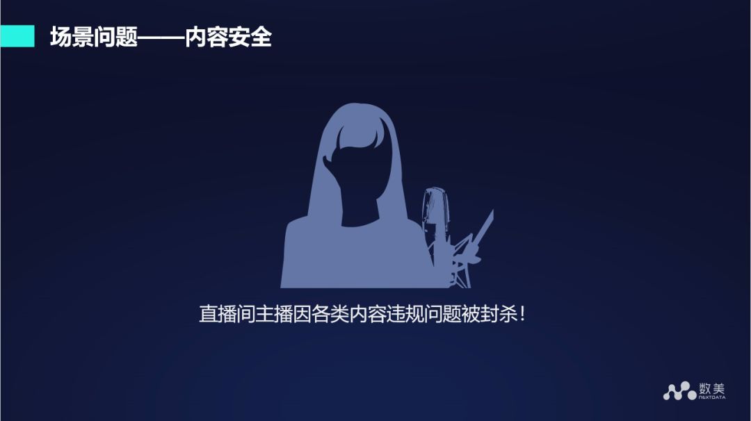 此外,直播中还存在较多的色情问题,包括视频、图像方面的色情,也包括音频方面的色情。有时也会有广告导流行为,所谓广告导流就是在某一个直播平台上,大家在音视频交流过程中有人发类似于我们私下加个微信聊吧,这样这个平台的流量就会被导走。我们的工作就是要在音频中识别出这些行为,为这些行为打上标签,让运营平台知道这些音频中存在这样或者那样的问题。以上所分析的问题完全属于截流问题。