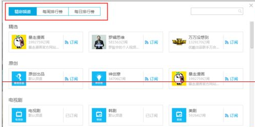 2、点进去,有精彩频道、每周排行、每日排行等,选择你喜欢的视频节目就好了!