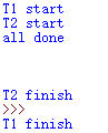 当执行了join功能之后,T1运行完之后才运行T2,之后再运行print(‘all done')