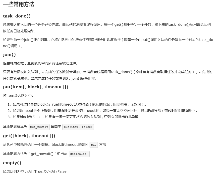 queue是python标准库中的线程安全的队列(FIFO)实现,提供了一个适用于多线程编程的先进先出的数据结构,即队列,用来在生产者和消费者线程之间的信息传递