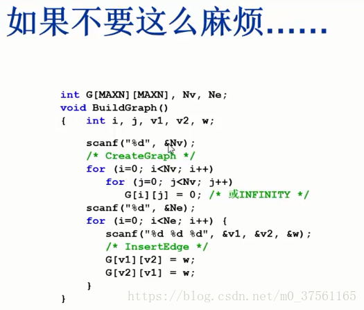 Graph->G[V][W] = 0;//有权图用INFINITY无穷大表示没有边