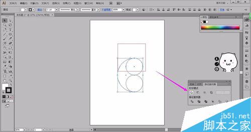 上色完成第一种,第二种方法画出三个正圆和前面一样再复制一下上面的小圆,然后用直接选择工具依次选中锚点并执行DEL删除锚点