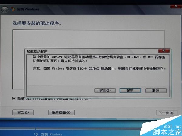 到了这里会提示加载驱动程序,我们把微星B250 GAMING M3自带的驱动光盘装入驱动中。