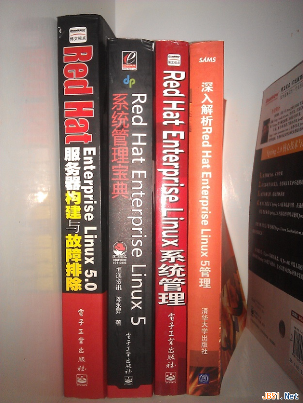 我想,我们中的很多人学习Linux都是从Red Hat开始的吧。就像我家里总有那么几本经典教材,如下图(我书柜一角的照片):