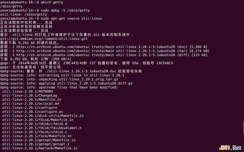 在Ubuntu系统下,可以通过sudo apt-get source命令获取某一个包的源代码。比如要想学习getty是怎么写的,想看它的代码,使用如下图命令: